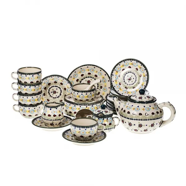 커피6인세트 24P, F45, 커피잔6개+소서6개+17cm플레이트6개+티폿몸체+티폿뚜껑+워머+캔들베이스+슈가통+저그+슈가통+저그