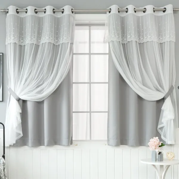 까르데코 노르딕암막+디망쉬레이스 창문커튼 4장세트, Y노르딕솔리드(그레이) 창문+디망쉬 레이스 창문
