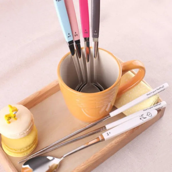 퍼니셜 픽미 컬러 4인 수저세트 이모티콘, 1세트, 숟가락 4p + 젓가락 4p