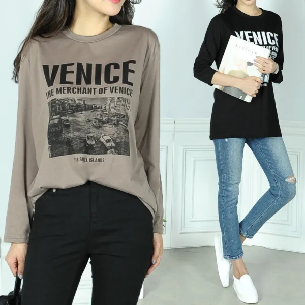 언스타일 베니스 루즈핏 레터링 긴팔 티셔츠