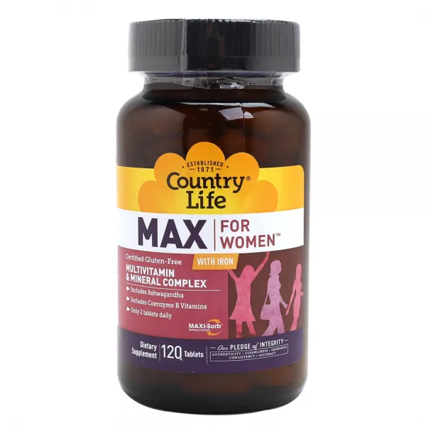 컨트리라이프 맥스 포 우먼 멀티비타민 & 미네랄 컴플렉스 타블렛 글루텐 프리, 120개입, 1개