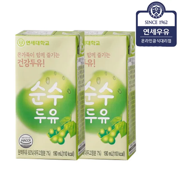 연세두유 통째로 갈아만든 무첨가 두유, 190ml, 1세트