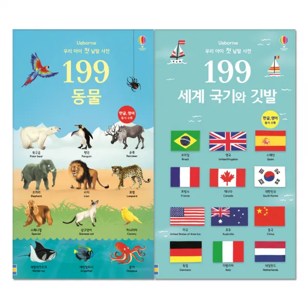 우리 아이 첫 낱말 사전 199 동물 + 세계 국기와 깃발, 어스본