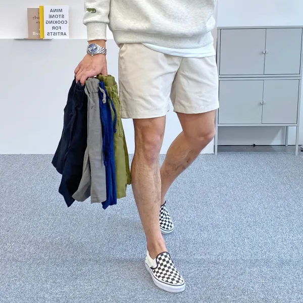 간빠레 베이직 4부 허리밴딩 린넨 반바지, 블랙