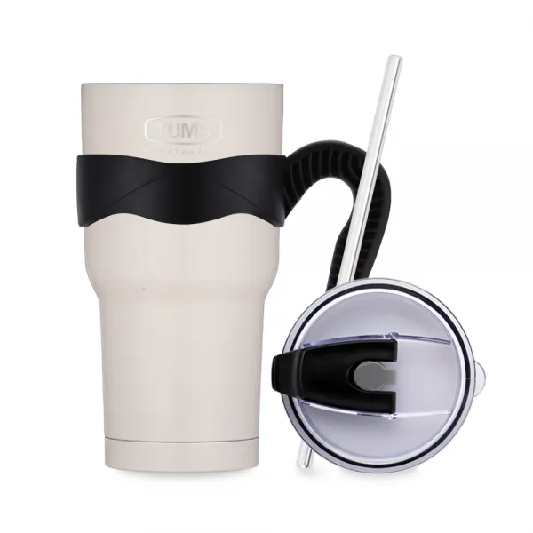 텀스 뉴메가 텀블러 + 손잡이 + 빨대 방수 뚜껑 + 스텐빨대, 베이지, 900ml