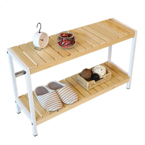 숲속애 화이트 철제 원목선반 800 2단, 원목 + 화이트프레임