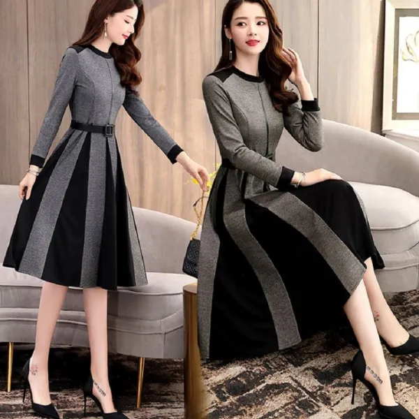 나라라오리 우아한 A라인 플레어 가을 겨울 원피스