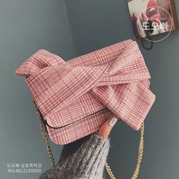 도오빠 트위드 여성 크로스백 미니 핸드백 리본 체인백 숄더백 토트백 패션 데일리백 여자 가방 귀여운 러블리 미니크로스백