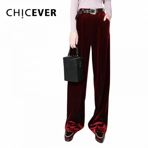 Chicever 가을 벨벳 넓은 다리 바지 여성 높은 허리 바지 여성 넓은 다리 집이 바지 캐주얼 옷 큰 크기