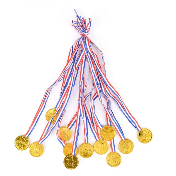 12 개 플라스틱 어린이 골드 당첨자 메달 아이 게임 스포츠 상 시상식 장난감 파티 호의 높은 품질, 1개, 12pcs