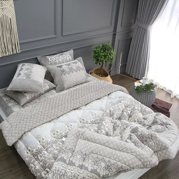 단잠 양면극세사 착번아웃극세사침구 풀세트-(이불+패드+베개커버), 그레이