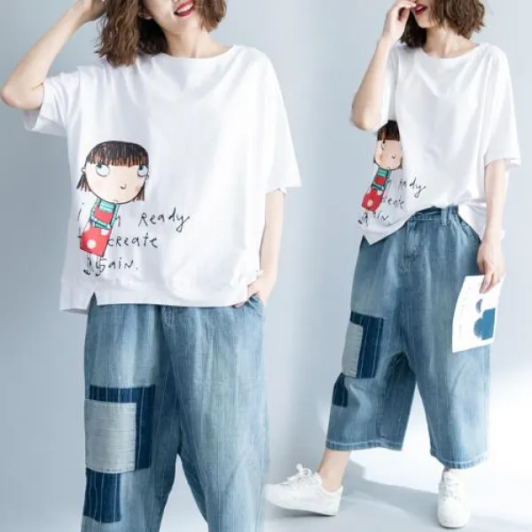 2019 여름 여성 오버핏 티셔츠 2019 새로운 느슨한 대형 면화 인쇄 캐주얼 티셔츠에서 실제 총점 가격 한도 45 위안