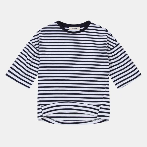 스탭키즈 스트라이프 핀턱 소매 티셔츠 SILA17804