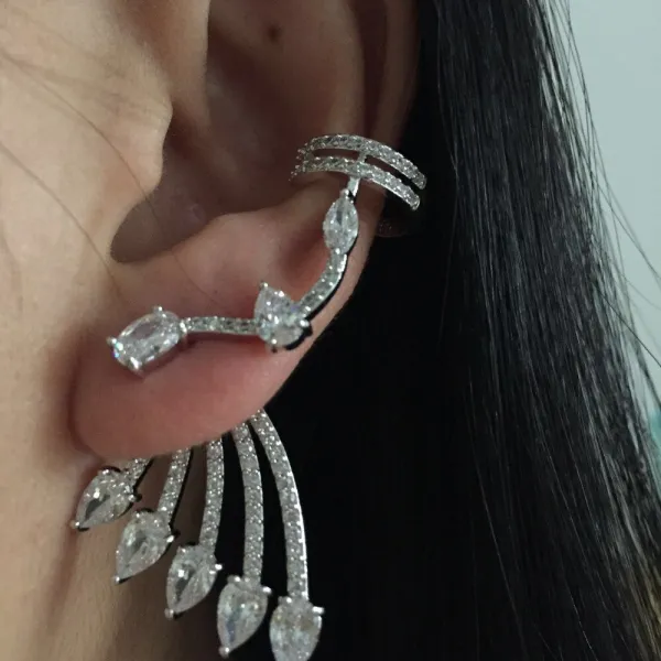 성명서 여성용 귀걸이 깃털 날개 모양의 2 개의 분리 된 부품 스터드 귀걸이 brinco single left ear cuff wearing