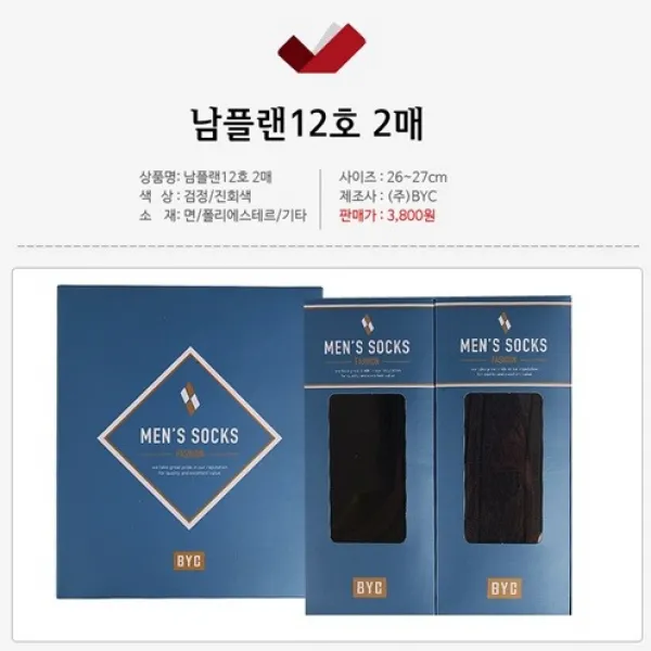 메이저유통 BYC 양말선물세트 남플랜12호2매