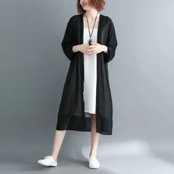 큰언니 1100 2396 시스루 오픈형 7부소매 쉬폰소재 간절기 롱 가디건