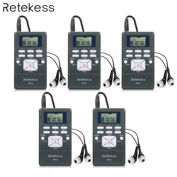 5pcs retekess pr13 휴대용 fm 라디오 수신기 포켓 라디오 방송국에 대 한 이어폰으로 동시 통역, 단일, 러시아