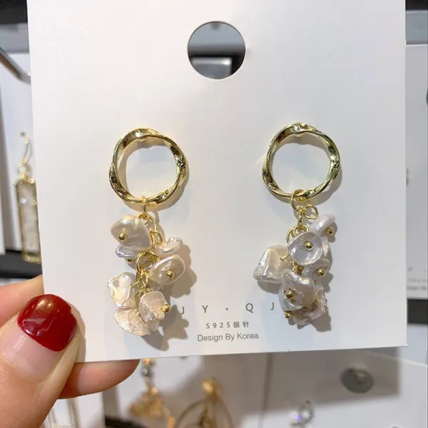 Mengjiqiao 2019 일본 한국 자연 담수 진주 술 드롭 귀걸이 여성을위한 수제 서클 쥬얼리 패션 oorbellen