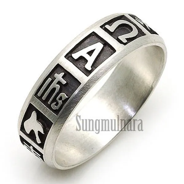 성물나라 그리스도 알파오메가 엔틱 음각 묵주반지 천주교 성물