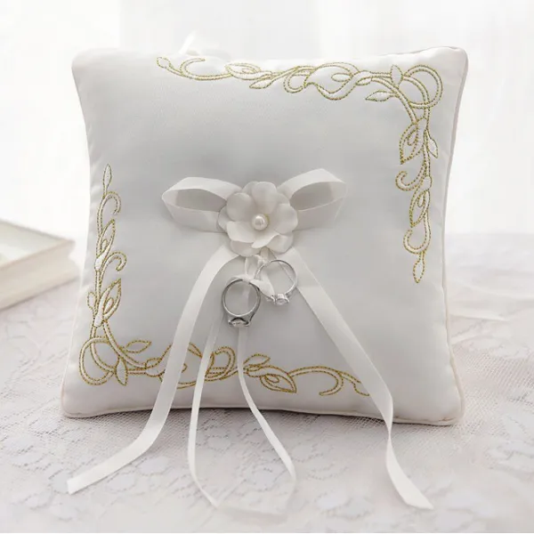 로맨틱 플라워 진주 장식 신부 웨딩 부품 포켓 링 베개 쿠션 무기명 새틴 리본 웨딩 용품, 1개, 단일