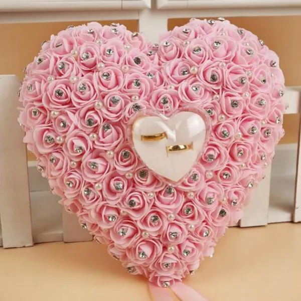 거품 꽃 하트 반지 홀더 신부 반지 베개 무기명 라인 석 발렌타인 데이 약혼 선물 로맨틱 잡초 파티 장식, 1개, mix colors