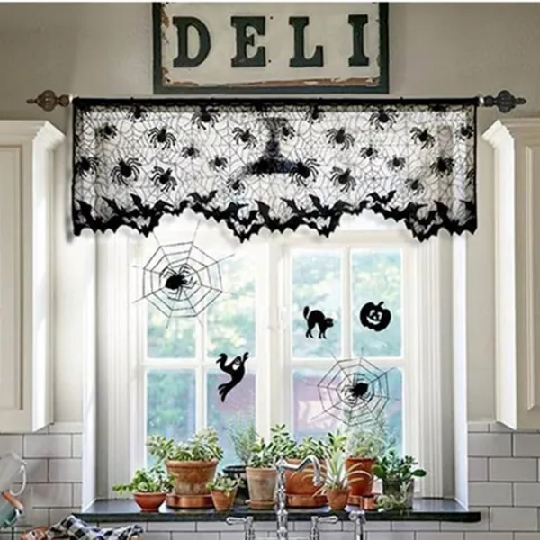 귀여운 할로윈 장식품 lampshades 창 커버 데스크 라이트 테이블 램프 스카프 블랙 거미줄 레이스 리본 valance 축제 장식, 1개, NO.1
