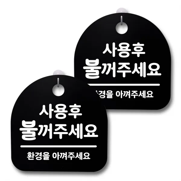 뭉키데코 생활속 문구 안내 간판 블랙 200mm 2p + 접착식 후크 2p 세트, 202 사용후 불꺼주세요, 1세트