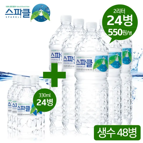[스파클] [ 빈병 회수] 생수 2리터x24병 (6병x4팩)+330mlx24병, 상세 설명 참조