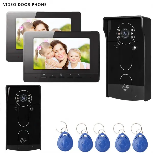 비디오 문 전화 인터콤 시스템 7 인치 tft lcd 화면 나이트 비전 rfid 2 야외 카메라 2 모니터 빌라에 대 한 비디오 문 전화, 블랙