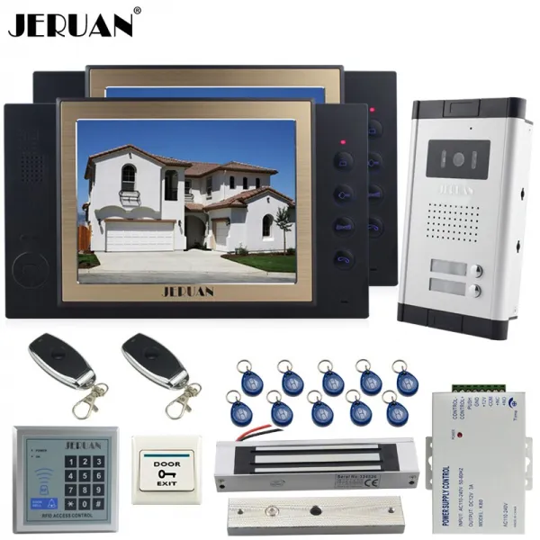 Jeruan 아파트 8 인치 lcd 비디오 문 전화 기록 인터콤 시스템 키트 700tvl 카메라 rfid 액세스 제어 180 kg 자물쇠, 단일