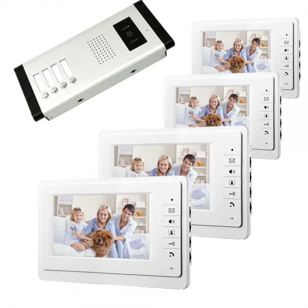 7 인치 비디오 문 전화 인터콤 시스템 아파트 tft lcd 화면 4 평면 실내 모니터 나이트 비전 cmos 야외 카메라, 단일