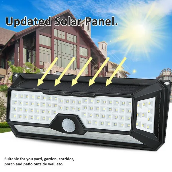 Kaigelin 방수 야외 모션 보안 조명 136 led 밝은 태양 광 조명 갑판 정원 ip65 3 모드 dimmable, White