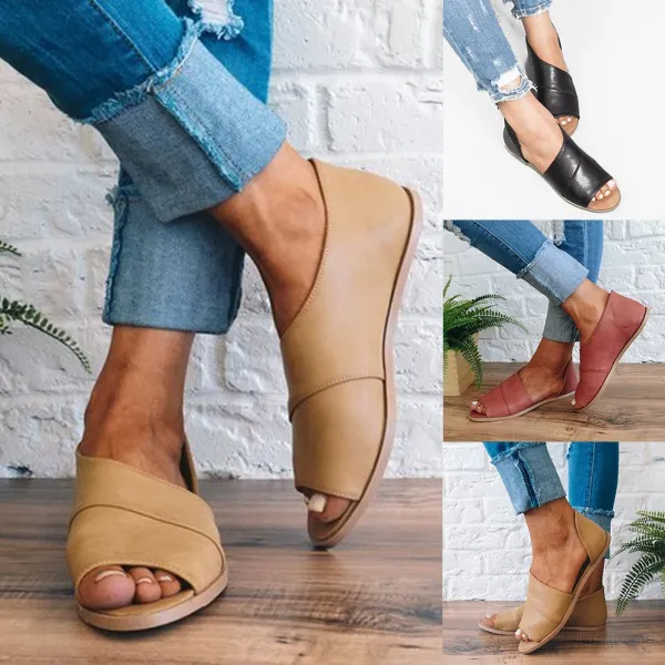 플랫 새 여름 샌들 비 슬립 통기성 솔리드 신발 여자 들여다 발가락 캐주얼 신발 패션 커버 힐 블랙 샌들 여성