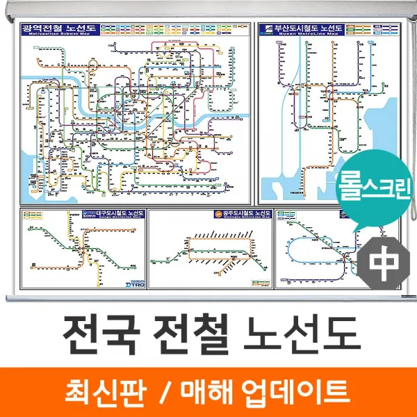 [지도코리아] 전국 전철노선도 150*111cm 롤스크린 중형, 고급천 - 롤스크린