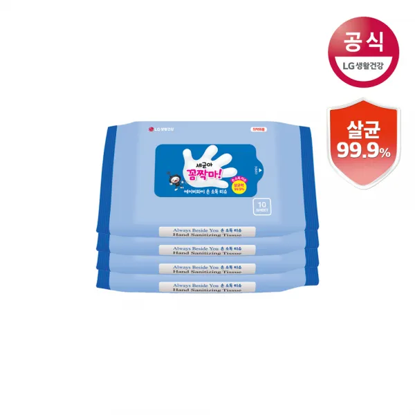 LG생활건강 학습준비물 국내생산 세균아 꼼짝마 ABY 휴대용 손소독 티슈 물티슈 10매 모음, 손소독 10매x4팩