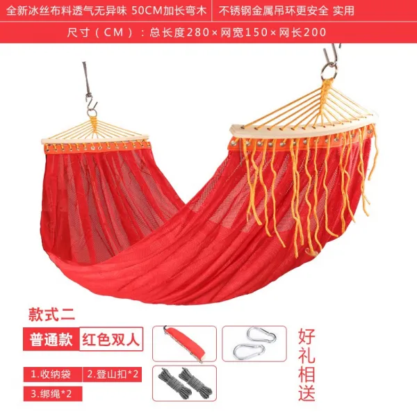 캠핑의자 야외 해먹 측면뒤집힘방지 더블 그물형태 통기성 싱글 공원 침실 캠프 망사 캐쥬얼 그네의자, T05-업그레이드형 레드색 살얼음판 타입2