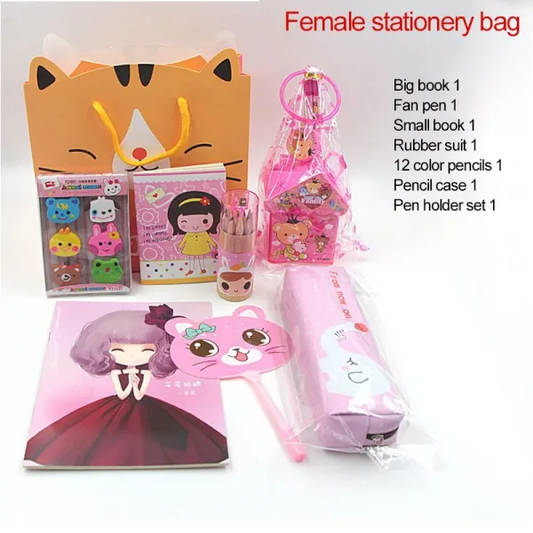 독창성 어린이 편지지 정장 reticule 학생 활동 보상 선물 유치원 고무 컬러 연필 가방 도서, pink