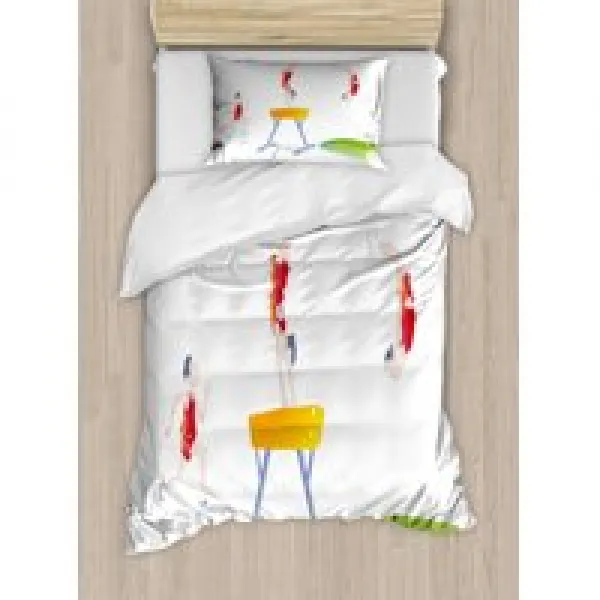 체조 다운 이불 세트 2인승 크기 남자 점프 Pummel Horse 올림픽 체급 곡예 캐릭터 일러스트 장식성 2종 침구세트 베개 1개 Sham 컬러풀 엠비슨네가 제작