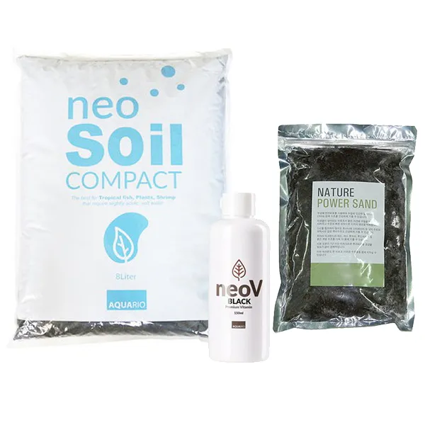 네오 컴팩트 수족관 소일 3mm 8L + V 블랙 수질 안정제 150ml + 네이쳐 파워샌드 1kg 세트, 1세트