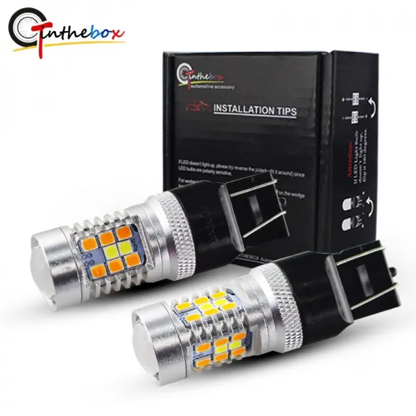 Gtinthebox w21/5 w led 7443 t20 led 28smd 3030 led 화이트/앰버 스위치 백 자동차 운전/주차 조명 및 신호 12 v 선회, 1개