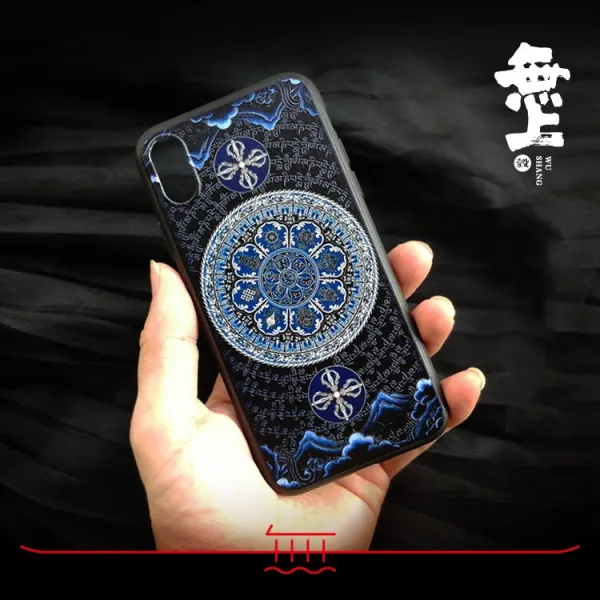 6 음절 만트라 전화 케이스 아이폰 xs 맥스 xr x 커버 6 6 s 7 8 플러스 불교 guanyin 만트라 길조 저주 라운드, 1개, 코튼 원단
