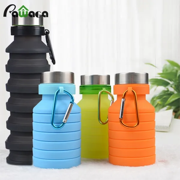 스포츠를위한 휴대용 실리콘 접을 수있는 물병 옥외 여행 텔레스코픽 병 접을 수있는 주전자 음료 병 550 ml, 1개, Green^0