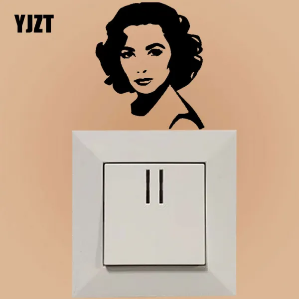 Yjzt 엘리자베스 테일러 여배우 클래식 핀업 벽 데칼 라이트 스위치 스티커 비닐 홈 장식 S18 0015, 1개, 검정