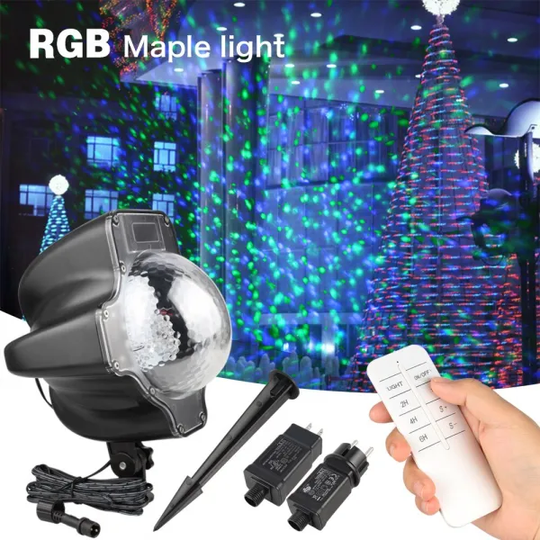 크리스마스 강설량 led 프로젝터 조명 rgb 메이플 리프 효과 stagelaser 프로젝터 라이트 방수 디스코 이벤트 파티 cf498, 1개, Eu 플러그