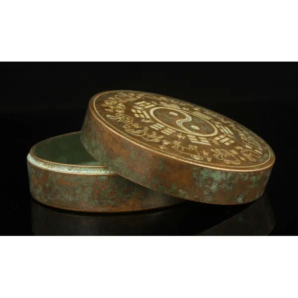 소장품 세공 아시아 청동 조각 절묘한 여덟 다이어그램 잉크 상자 동상, 1개, 단일