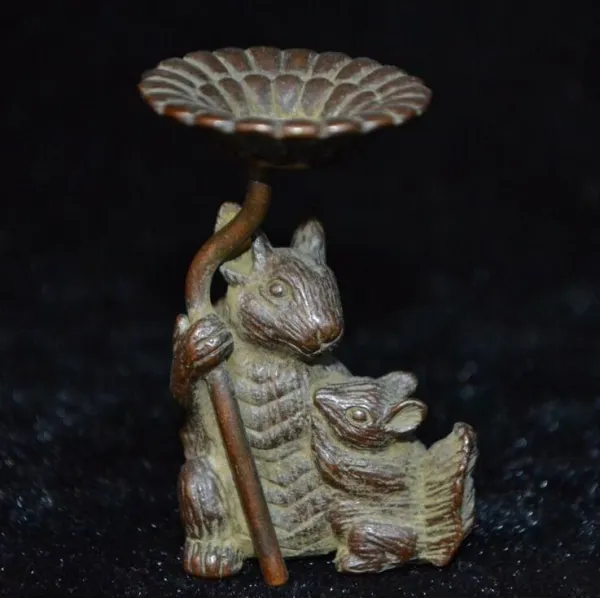 소장품 오래 된 구리 부처님 중국 동물 어머니 마우스 & 아들 마우스 로터스 동상 아래, 1개, 단일