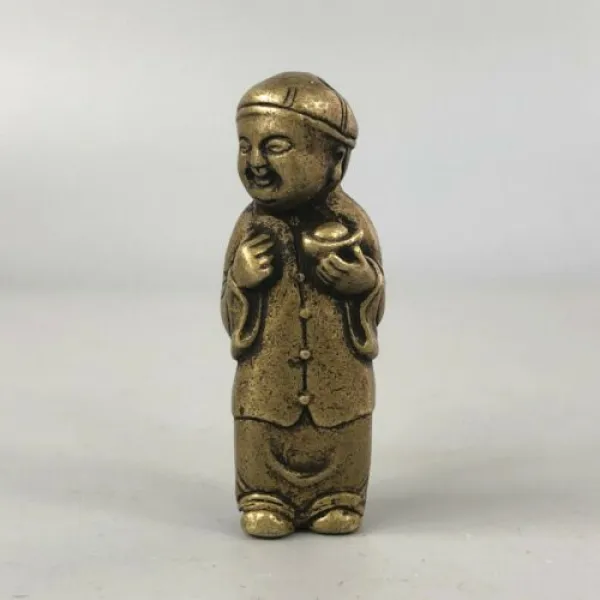희귀 한 중국 골동품 소장품 오래 된 황동 세공 행운 아이 보류 주괴 동상, 1개, 단일