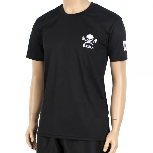 쿨론 백골마크 투톤 반팔티 검정 로카티 군인 티셔츠