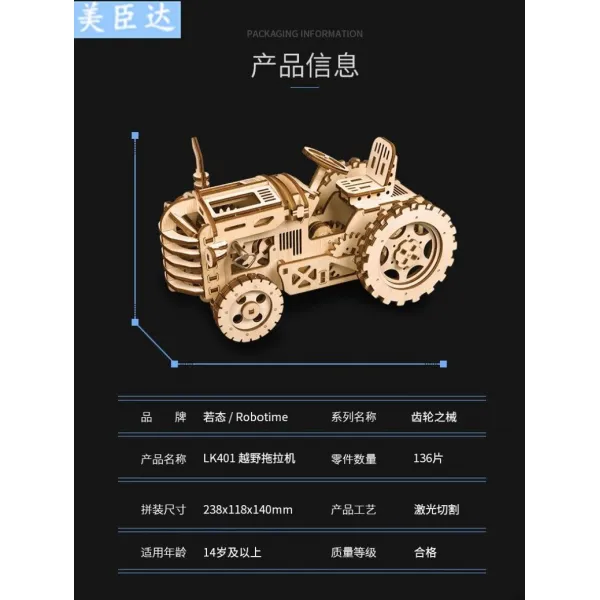Robotime 나무 비행선 DIY 장난감 나무 수제 그룹 조립, 오프로드 트랙터는 실제 주행이 가능합니다, 개