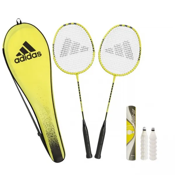 아디다스 슈필러 배드민턴 라켓 E05 옐로우 2p + 커버 + 혼합 셔틀콕 M100 12p, 1세트